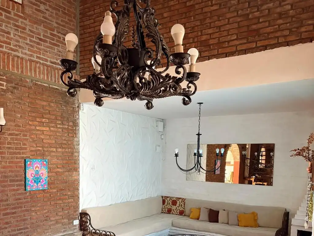 Al ingresar los hacemos al living, el mismo es desnivel, tiene hogar a leña, y sillones empotrados. En la misma planta, comedor integrado a cocina completamente equipada con barra desayunadora, desde la misma tenemos acceso al Garage, cuenta con capacidad para dos auto y portón manual de fácil manejo.