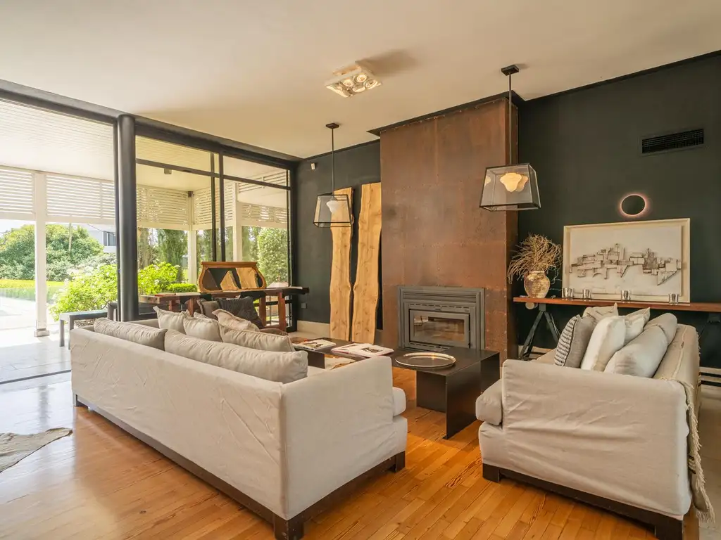 Casa Moderna con terminaciones de primera calidad de construcción, sobre lote de 3500 m2 parquizado y con arboleda añosa.