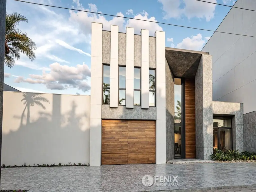 En planta alta se ubican dos dormitorios en suite y un estudio abierto vinculado a la doble altura, que aporta luz y jerarquía al ambiente principal.