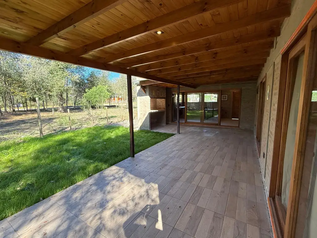 La casa cuenta con: Amplia sala de estar comedor y living con puerta ventana corrediza de 4 hojas que conecta a galería exterior cubierta con área de parrilla