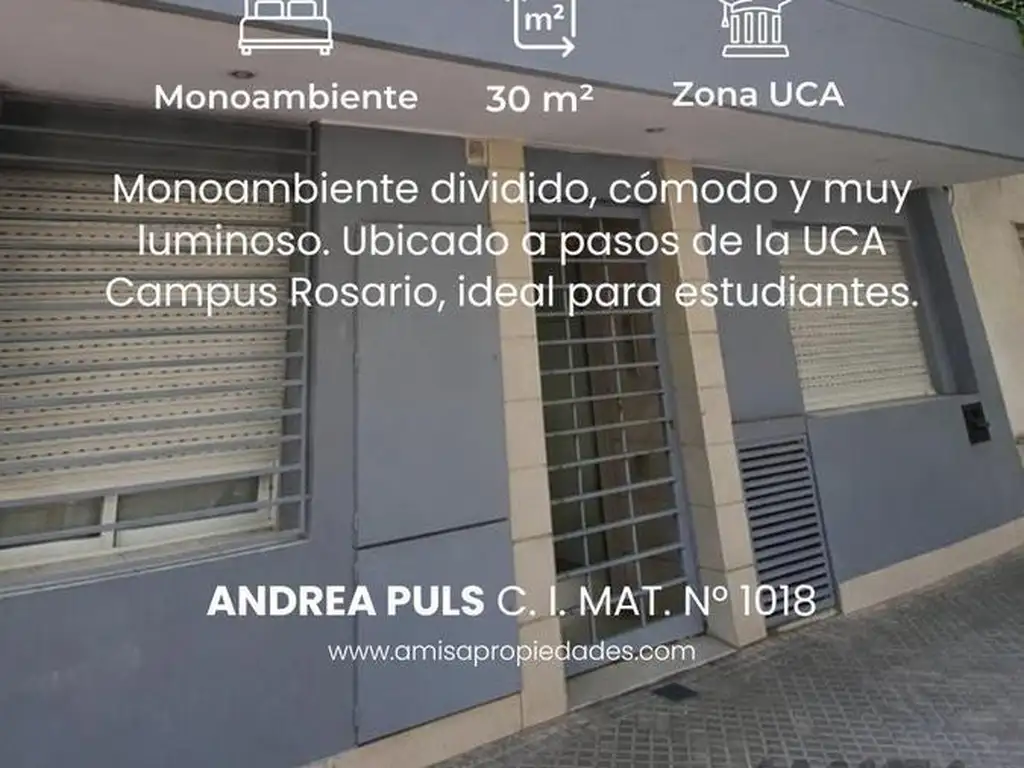 Excelente unidad ubicada a pasos de la UCA Campus Rosario, ideal para estudiantes.