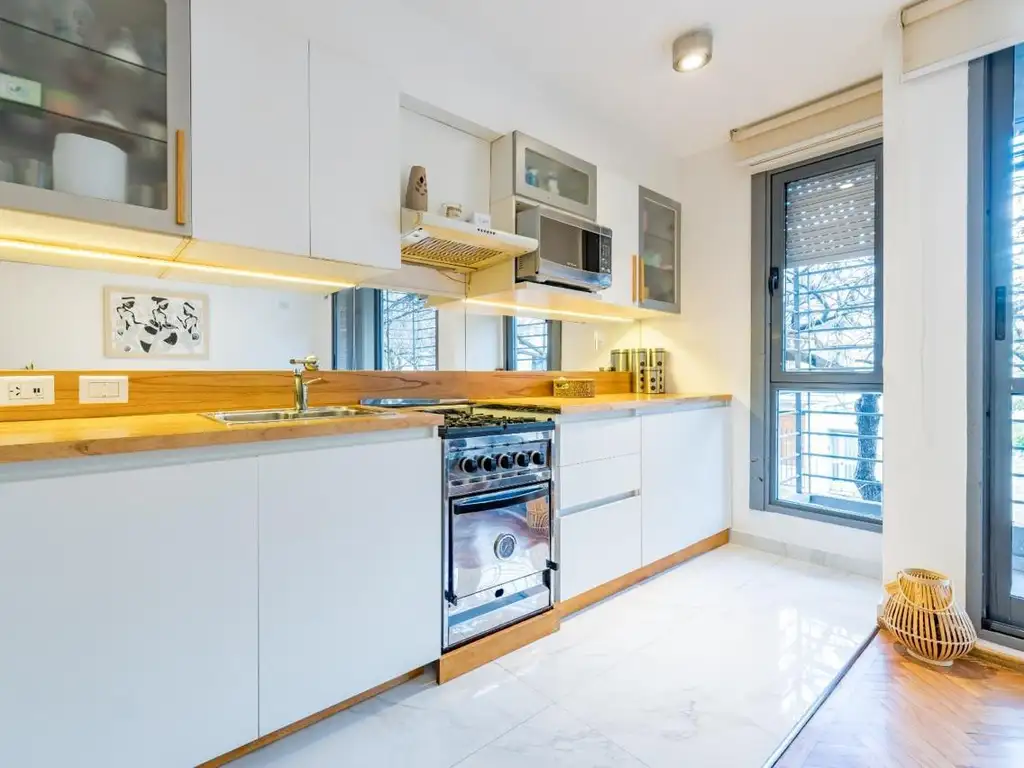 Distribución: ingresando desde el living comedor, nos encontramos con un ambiente muy luminoso. Cocina integrada al living comedor, lavadero independiente, un baño completo y dos dormitorios con placares empotrados y ventanales DVH que aportan ventilación.