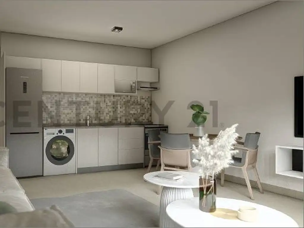 La unidad se compone de un ambiente único con cocina integrada y salida al balcón al frente, lo que aporta luz natural y ventilación. Cuenta con un baño completo y una distribución pensada para aprovechar cada metro, logrando un espacio cómodo y versátil, muy buscado en el mercado de alquiler.