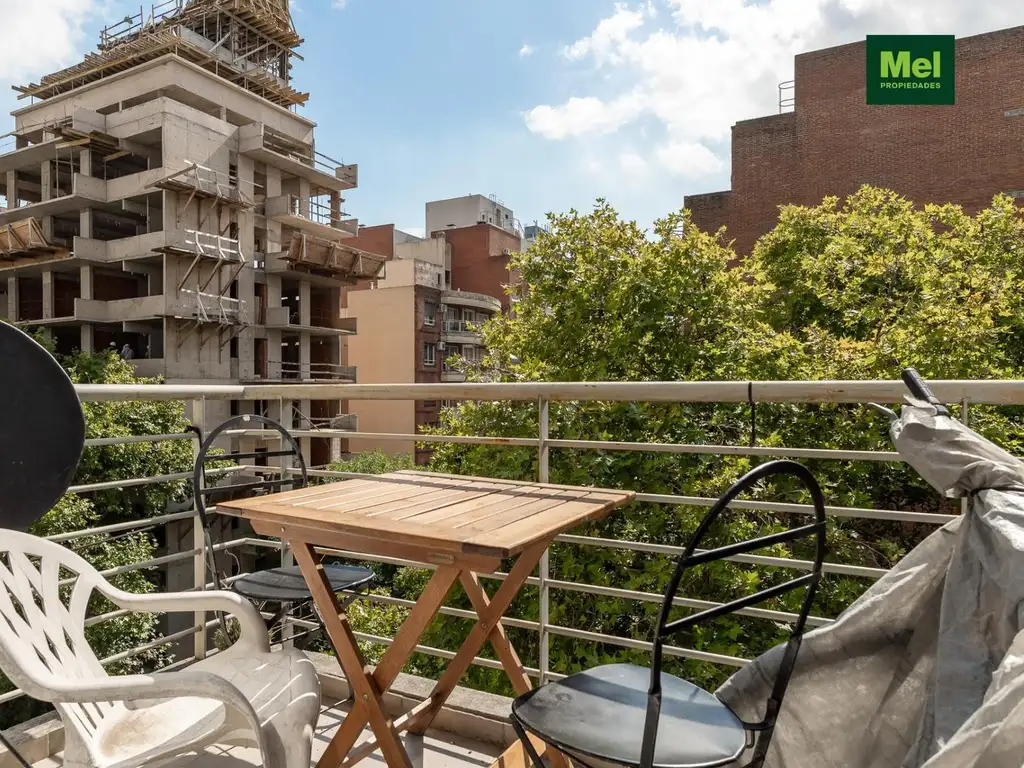 Departamento de tipo apaisado, lo que permite su perfecta división, logrando el living con salida a balcón y el dormitorio con su ventana y vista a la esquina.
