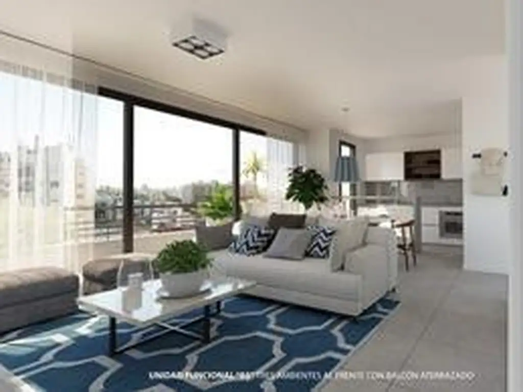 Hermosa unidad al frente con balcón y living comedor con cocina abierta.