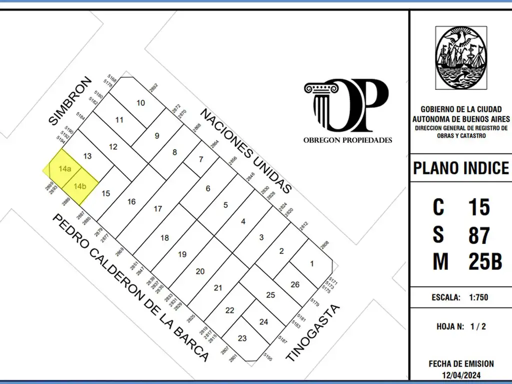 Venta 2 Lotes USAB 0 en VILLA DEVOTO 18 x 10 en Esquina Calderón de la barca y Simbrón