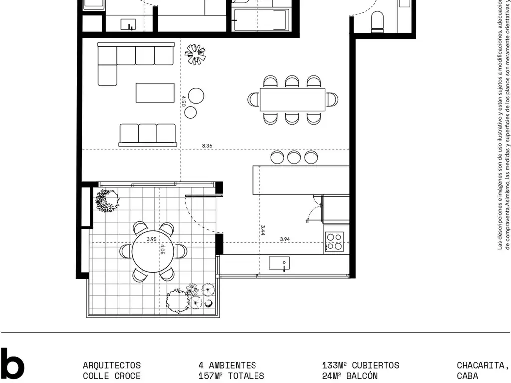 Departamento al frente de 155,7m2. Amplio y luminoso living comedor apaisado con salida al patio/balcón de 17,5m2. Toillette de recepción. Cocina con amplio ventanal al frente. Lavadero separado.