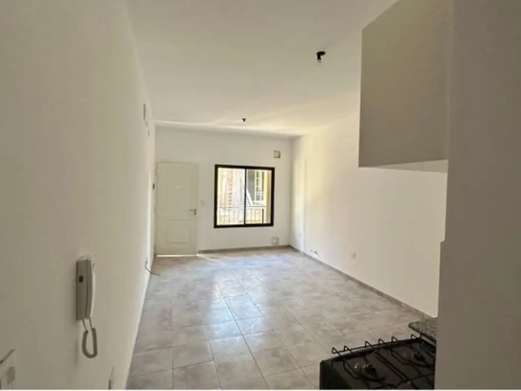 El interior cuenta con un amplio comedor y cocina equipada con muebles de melamina, bajo mesada y alacena, además de una mesada de granito. La cocina está conectada a gas natural y dispone de un termotanque eléctrico, con conexión para lavarropas frontal mediano. Baño completo con diseño moderno, y dormitorio con placard de piso a techo, garantizando un espacio funcional y bien iluminado. Además cuenta con un balcón el dormitorio y el departamento incluye espacio vehicular.