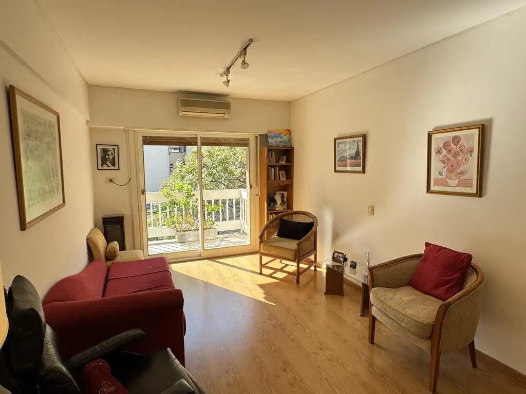 Ambiente amplio y cálido con salida a balcón corrido con vistas abiertas y arboladas, ideal para disfrutar al aire libre. Cocina integrada, funcional y moderna. Baño completo refaccionado. Apto profesional, ideal tanto para vivienda como para estudio.