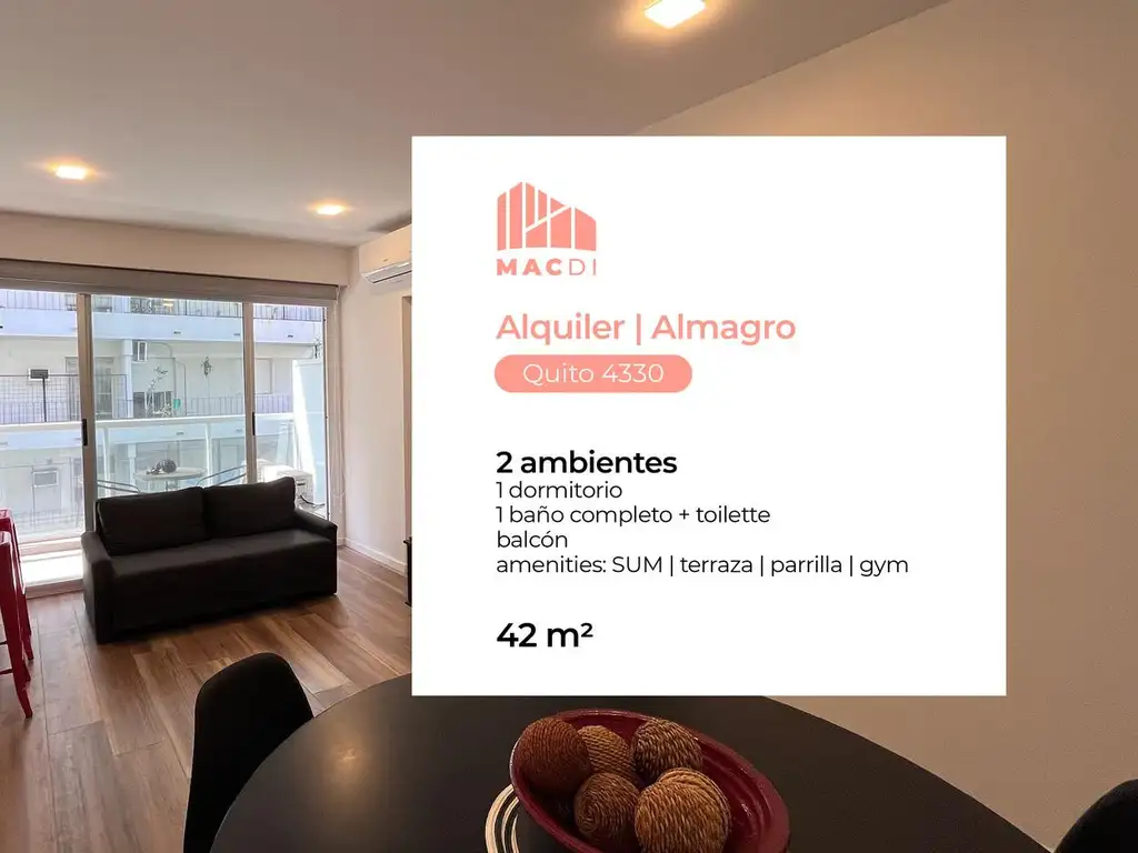 Excelente Dpto. 2 ambientes en Alquiler en edificio con amenities.