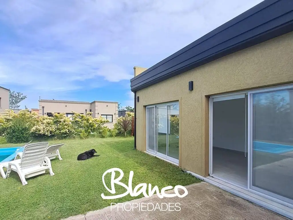 Hermosa casa a media cuadra de laguna, muy luminosa, ambientes amplios, cocina integrada separada por una barra, living comedor. Tres dormitorios, uno en suite con amplio cambiador y dos que son asistidos por un baño, baño de servicio.