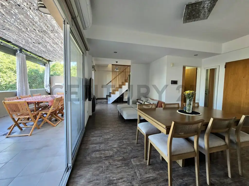 º SE INGRESA AL DEPARTAMENTO POR EL 3ER PISO AL LUMINOSO COMEDOR (4,25 x 3,70 M²) CON UN GRAN VENTANAL QUE DA AL AMPLIO BALCON CORRIDO ATERRAZADO.