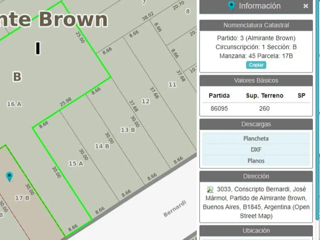 Ubicación: El terreno está ubicado sobre la calle Conscripto Bernardi entre Gral. José Arias y 20 de Septiembre.