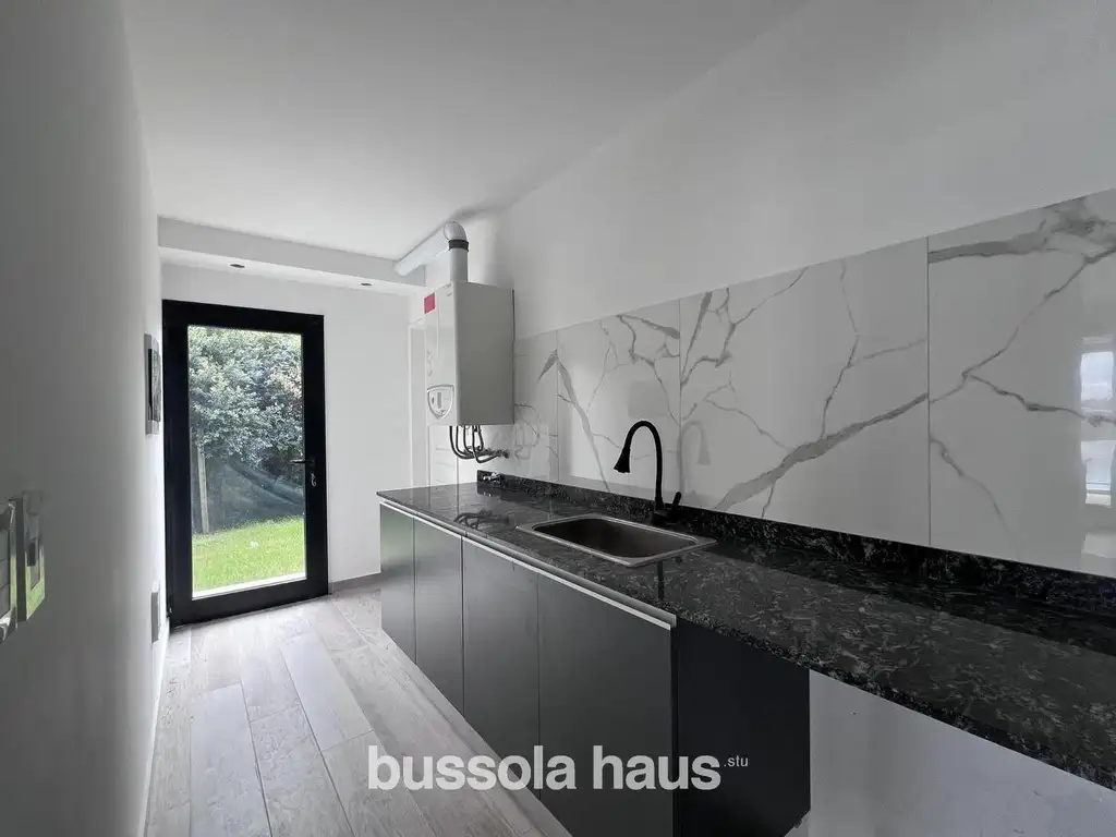 En la planta baja, el hall de recepción da paso a un área social compuesta por un amplio living comedor, con grandes ventanales que integran visual y funcionalmente la galería, el jardín y el espejo de agua. La cocina con comedor diario, muy bien equipada, se presenta como un espacio práctico y luminoso para el uso cotidiano. Este nivel se completa con un toilette de recepción y un sector de servicio claramente definido, con lavadero, habitación y baño, asegurando circulación independiente.