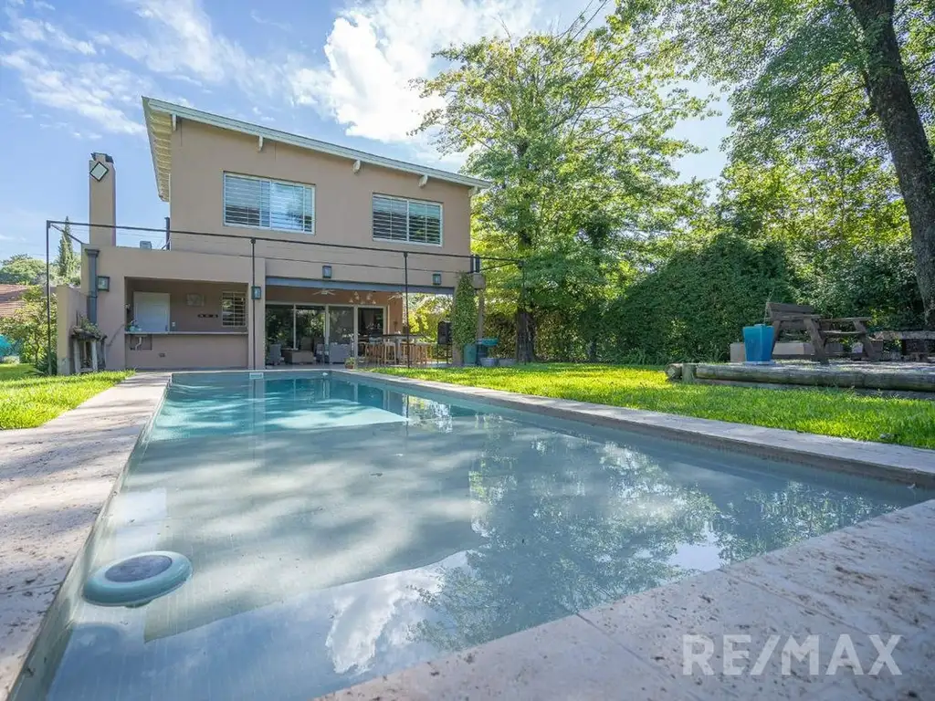 En el exterior una amplia galería con parrilla, barra con lavatorio, sector fogonero, pileta revestida en venecitas con borde térmico, y espacio guarda cosas