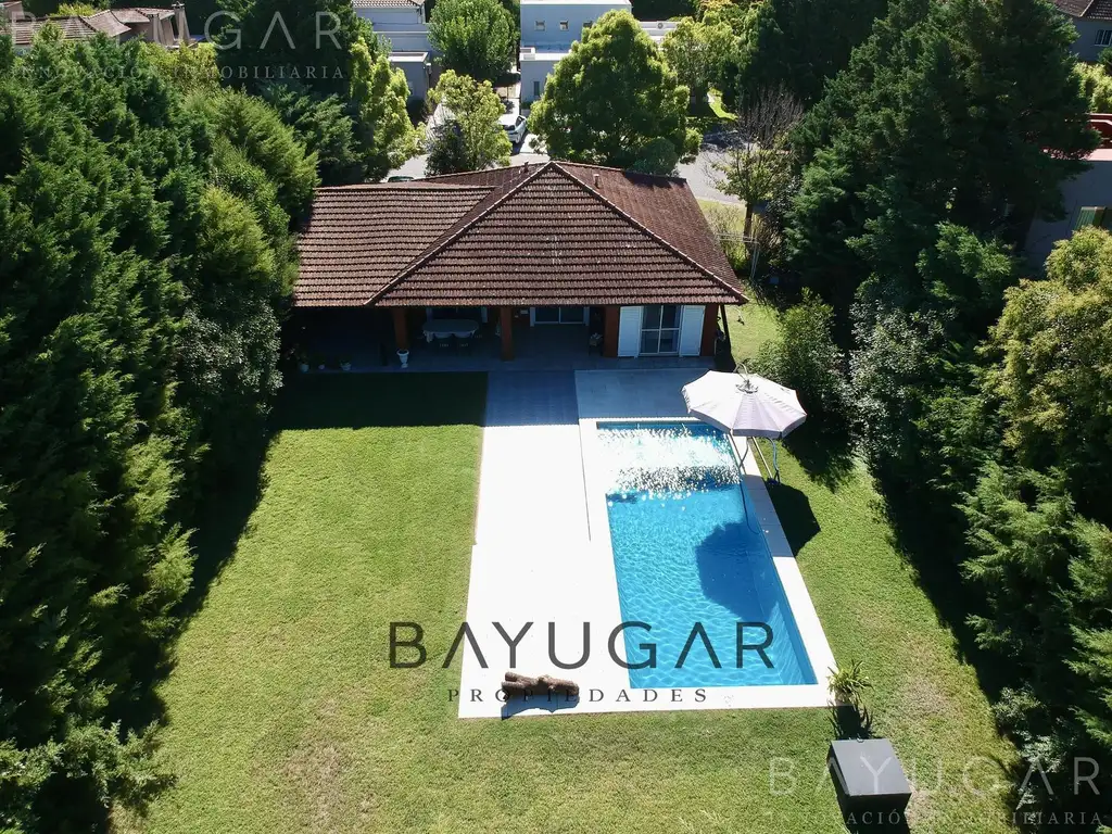 Excelente propiedad implantada sobre lote central de 975 m2 (20% más grande que el promedio del barrio), un diferencial real que se traduce en mayor privacidad, amplitud de parque y mejor calidad de vida. La casa está desarrollada íntegramente en una sola planta, con muy buena distribución funcional, ambientes luminosos y detalles de calidad constructiva. Cuenta con aproximadamente 780 m2 de lote libre, lo que brinda enorme potencial para ampliaciones, nuevas áreas exteriores o proyectos personalizados.