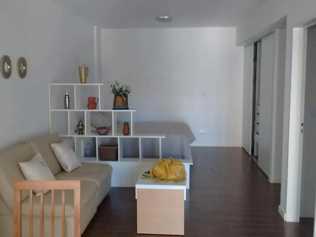 El ambiente de amplias dimensiones cuenta con sofá cama, mesa y sillas y aire acondicionado. Y cuenta con salida a balcón con vista abierta al contrafrente.