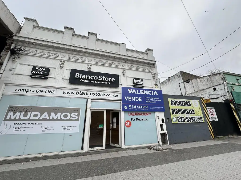 Excelente local comercial ubicado sobre Av. Luro entre Olazábal y Funes. La propiedad consta de 2 lotes de 8, 60 de frente cada uno haciendo un total de 17,20 metros de frente y 43,30 de fondo. El local esta constituido en el lote izquierdo y sobre el lote derecho encontramos al frente espacio de estacionamiento para autos y al fondo una construccion con losa y espacio de almacenamiento.