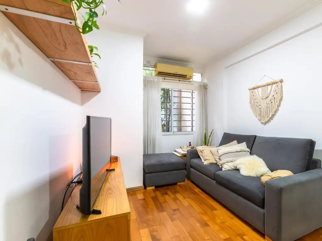 El departamento dispone de 4 ambientes: 2 dormitorios, 1 baño, un living comedor. Entre sus servicios incluye gas natural, electricidad, agua potable y servicio de encargado. Además, disfrutarás de seguridad y una piscina en el edificio.