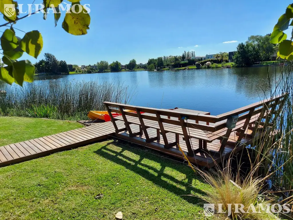 Entrada imperial de adoquines. Garage cubierto para 2 autos. Dos Galerías: una con parrilla y mesa, y la otra para sector de Living. Tender. Amplio Jardín parquizado con Riego automático, Asador, Muelle a la laguna, Pileta revestida con venecitas, con playa húmeda. 2 Bauleras.