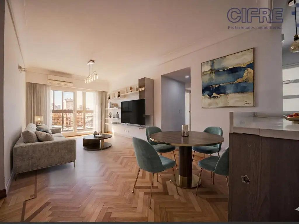 Departamento de 3 ambientes reciclados, 2 baños, con cochera fija y balcón.