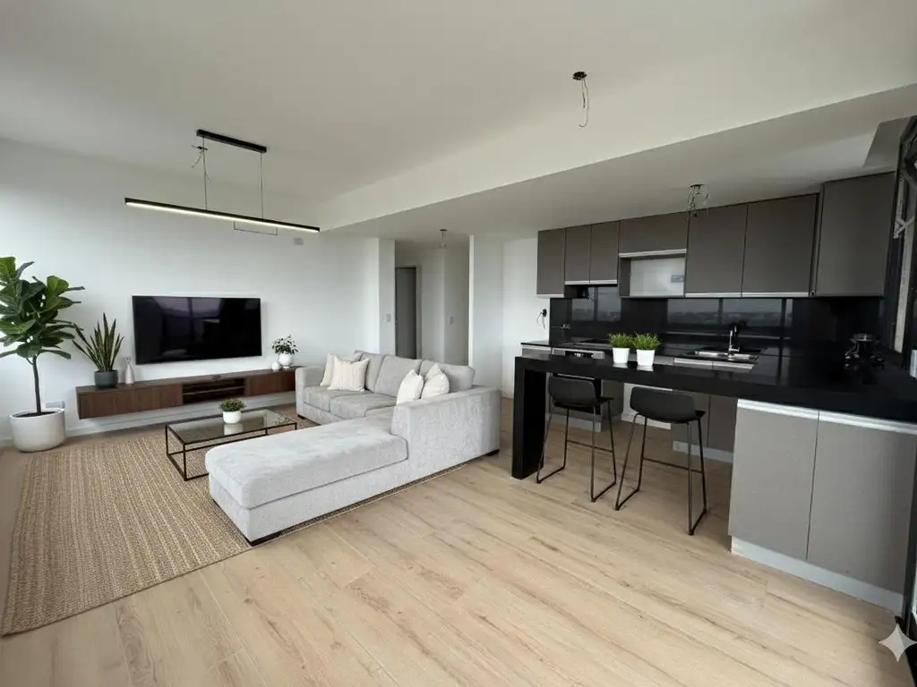 Ingresamos al living cocina, comedor cuenta con barra , balcón, todas las ventanas son de doble vidrio de seguridad (DVH) MUY LUMINOSO DESDE TODOS SUS AMBIENTES Y EXCELENTES VISTAS AL NORTE Y ESTE