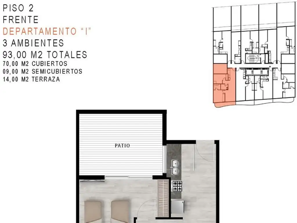 El valor publicado corresponde a un departamento de 3 ambientes ubicado en el 2do piso al frente.