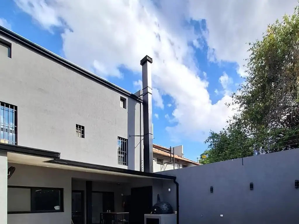 La entrada principal conduce a un patio amplio con una pileta de natación. En un extremo del patio, se encuentra una parrilla y un horno de barro, perfectos para reuniones al aire libre.