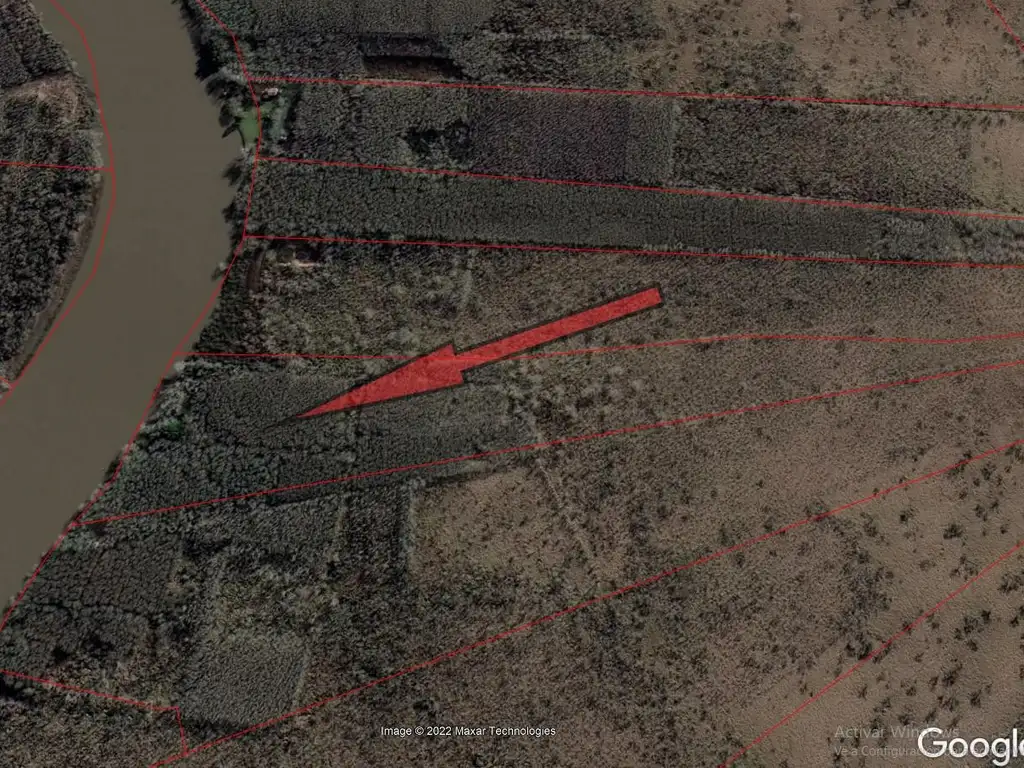 El terreno tiene 190 metros de frente y unos 1000 metros de profundidad de manera irregular, generando una superficie total de 9 hectáreas. con plantación de Sauces y Álamos