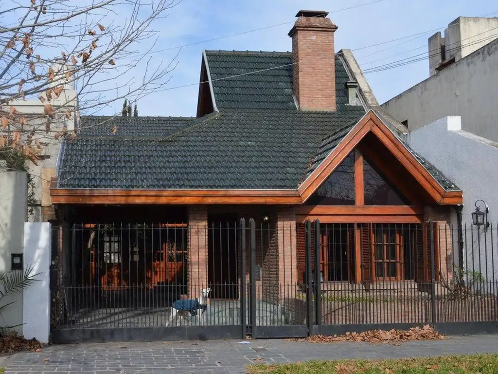 PLANTA BAJA: Living con hogar, comedor formal con piso de madera entarugado, toilette, cocina comedor diario con muebles bajo y sobre mesada, anafe y horno empotrado. Cuarto de servicio con baño y ducha. Lavadero. Cochera cubierta con doble funcionalidad, a veces hace de quincho. Parrilla. Fondo libre.