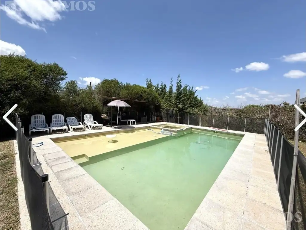 La pileta de 9 x 4 metros cuenta con jacuzzi, playa húmeda y pérgola, brindando un espacio exterior completo y funcional.