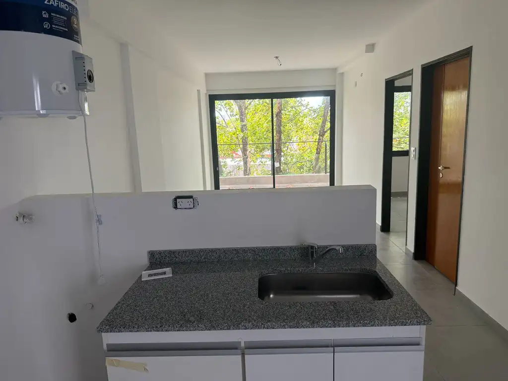 La disposición del departamento garantiza una excelente vista y una óptima entrada de luz natural, el edificio es todo electrico, se entrega con bajo mesada, bacha y griferia completa marca fv, termotanque electrico, entrada para lavarropas, el baño completo con todos sus sanitarios, vanitory y griferia todo marca Ferrum