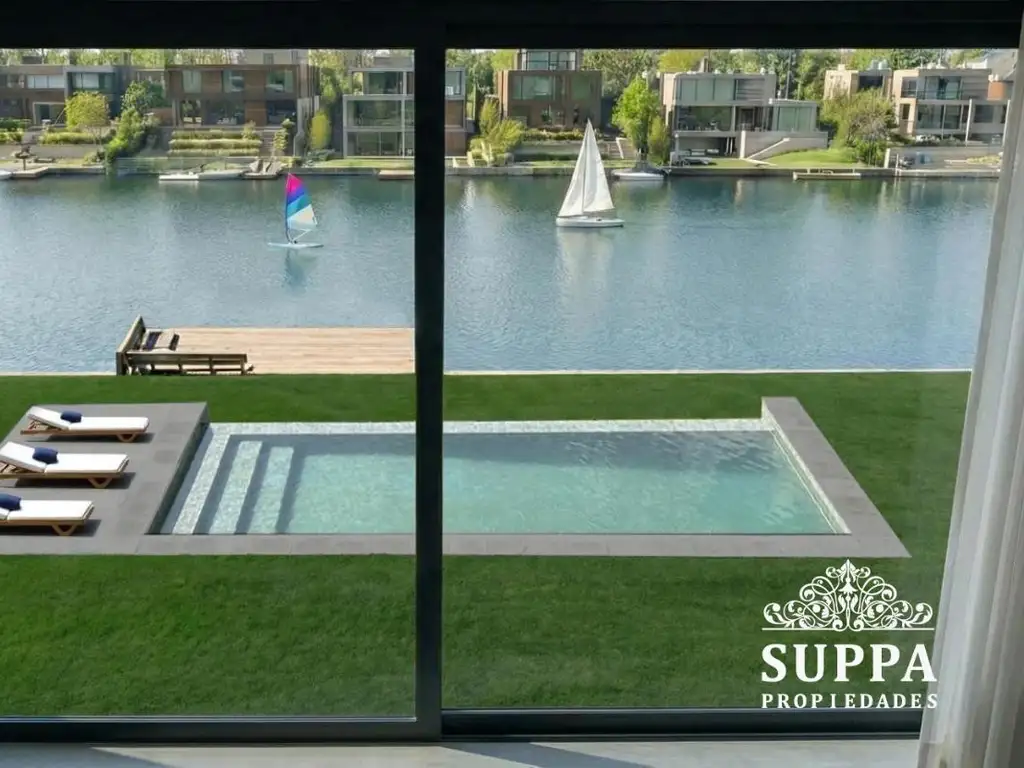 El exterior invita a relajarse y disfrutar: jardín totalmente parquizado, riego automático y una impactante pileta de borde infinito revestida en venecitas, con solárium y vistas directas al lago, un verdadero escenario para vivir atardeceres únicos.
