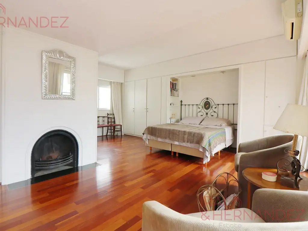 Dormitorio principal en suite con amplios placares y chimenea