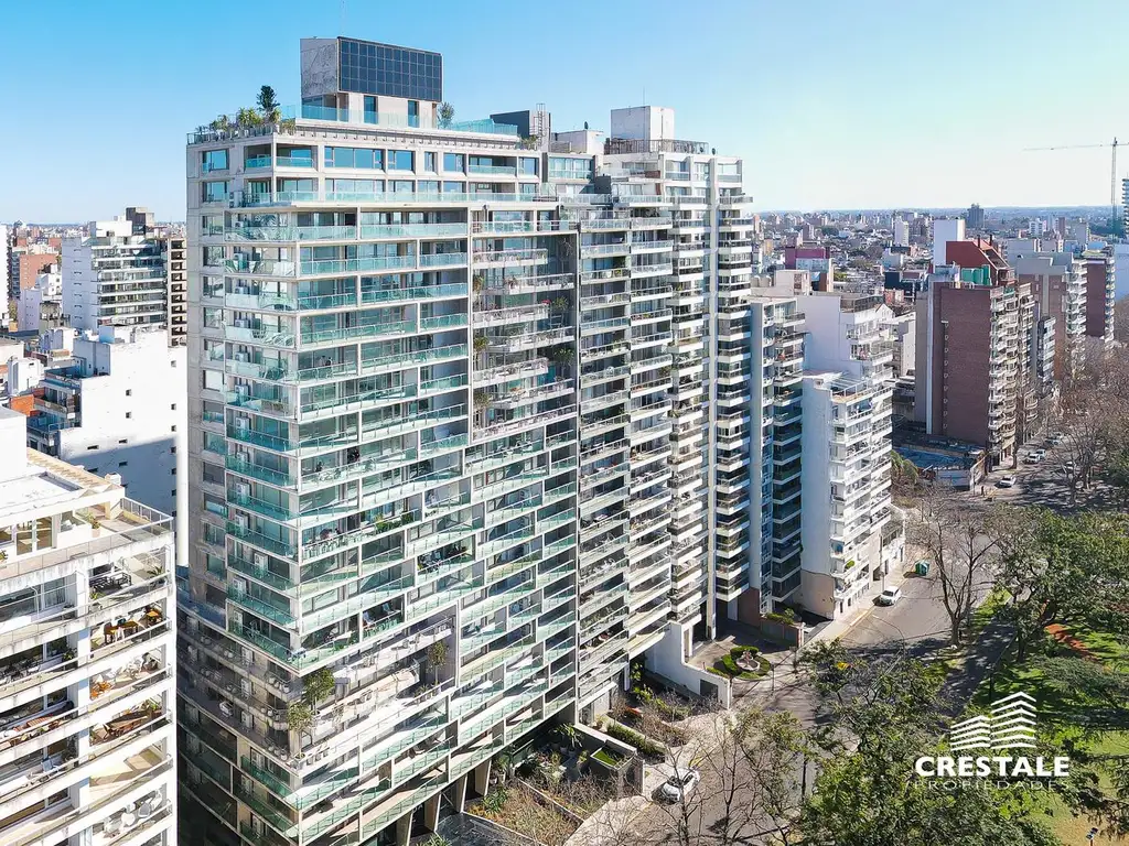 Carpinterías de alta prestación con barandas de cristal en balcones; Pisos y revestimientos de porcelanato de primera calidad; Cocinas equipadas con mobiliario completo; Mesadas en granito; Placares con interiores terminados; Dormitorios en suite con vestidor; Baños con griferías y artefactos de línea premium; Lavadero independiente; Previsión para climatización; Soluciones constructivas con criterios de sustentabilidad