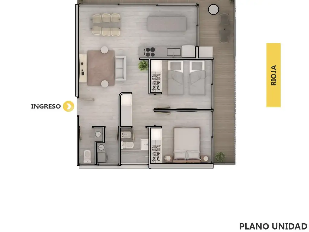 Ingreso a estar comedor con salida a balcón sobre la esquina de Rioja y Moreno. Cocina equipada con muebles de alacena y bajomesada completos. Dormitorios con placares con interiores terminados. Toilette y lavadero asistiendo al sector social. Baño completo con griferías y sanitarios de primera marca.