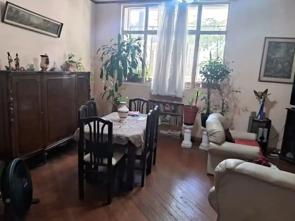Apto credito. Departamente de 4 ambientes, al frente, PB. Superficie total 140m2, cubierta 130m2, descubierta 10m2. Living comedor, 3 dormitorios, cocina completa con muebles altos y bajos, baño completo, patio. Patio de 8,20 m2 con techo rebatible y escalera a planta alta donde hay un ambiente que puede utilizarse como habitación de servicio o dormitorio; lavadero independiente en el patio.Pisos de pinotea y techos doble altura en todos los ambientes.