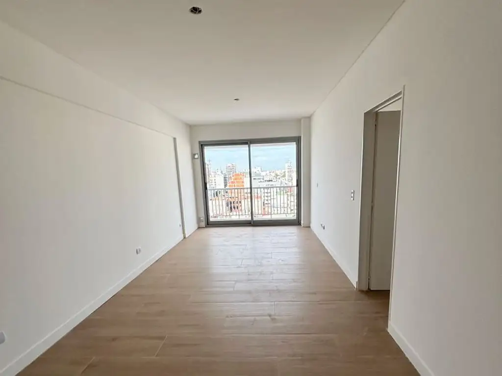 Toilette de recepción, cocina ya equipada, con muebles en alto y bajo mesada, mesada tipo silestone; salida al balcón.