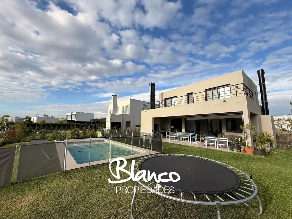Hermosa casa de estilo moderno a estrenar en el Barrio cerrado Puertos del Lago - Acacias. Desarrollada en dos plantas y con excelente orientación oeste.