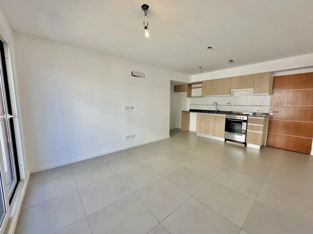 Al ingresar a la unidad encontraremos la cocina comedor integrada con muebles bajo mesada y alacena completa, con espacio para el lavarropas y microondas, balcón hacia el frente del edificio, un baño completo con bañera, y dormitorio amplio con placard completo con interiores.
