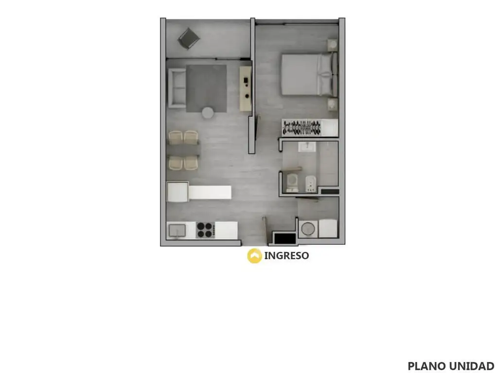 Dormitorio independiente con placard con interiores completos. Baño completo con revestimientos en paredes, loza sanitaria y griferías de primeras marcas.