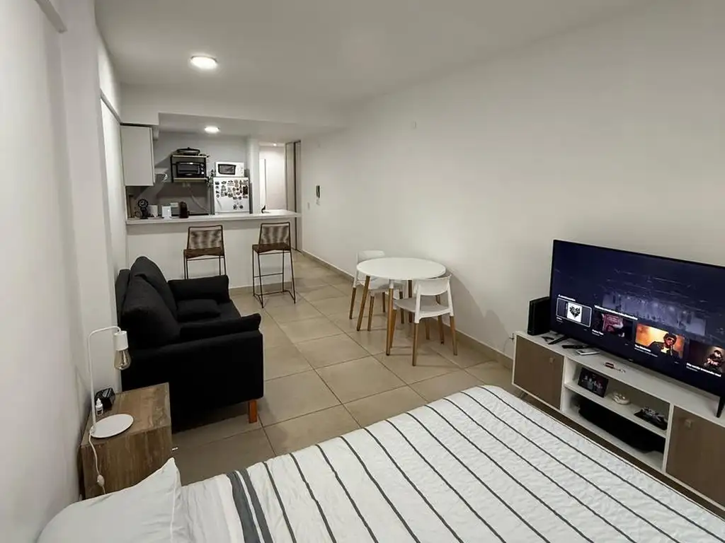 Se trata de un ambiente y medio con excelente distribución, espacio cómodo y funcional. Cuenta con cocina integrada en L, optimizando el uso del ambiente principal.