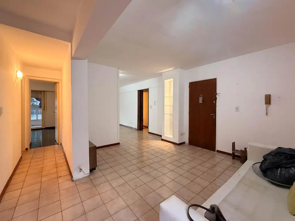 Edificio de planta baja y 4 pisos. Subiendo por escaleras encontramos el departamento con doble ingreso. Al ingresar encontramos el living comedor con salida a balcon cerrado al frente. El departamento posee una cocina semiintegrada completamente equipada con barra. Por los pasillos distribuidores encontramos los ba;os completos, ambos con ducha y dormitorios, ambos con placares con interiores completos. El principal posee salida al balcon y el secundario con ventana hacia el balcon.