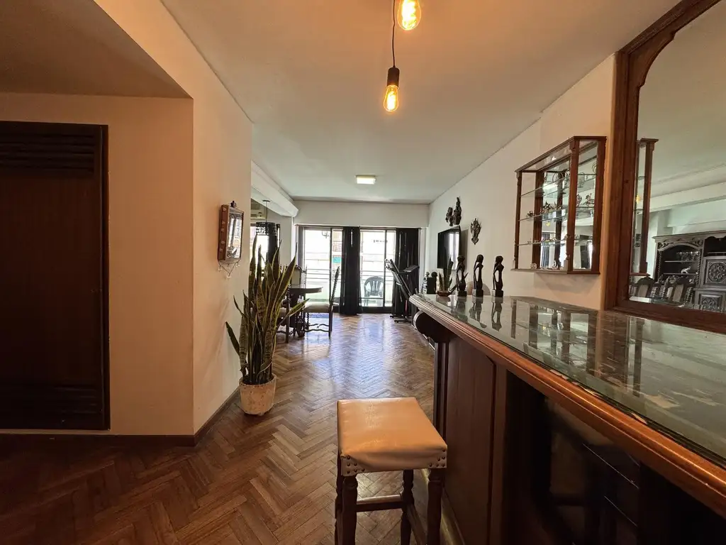La unidad suma un total de 7 ambientes, contado con un amplio y luminoso living comedor, hall de ingreso, cocina completa separada y lavadero. Ademas de un balcón corrido al frente y otro a contra frente con parrillero.