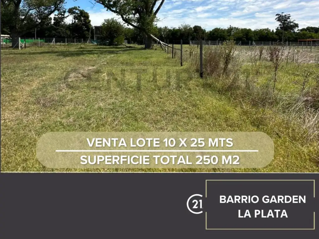 Lote de 10 x 25 metros (250 m²) ubicado sobre Ruta Provincial 36, entre calles 425 y 427.Barrio Cerrado Garden