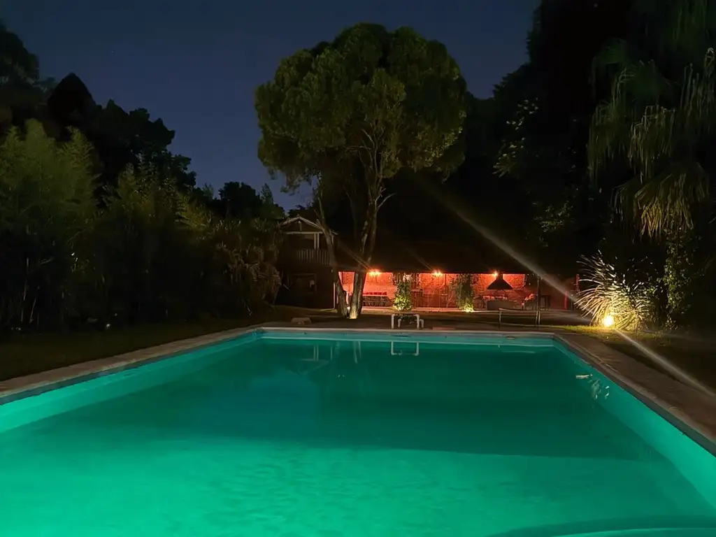 El exterior de la propiedad es igualmente impresionante, con un jardín bien cuidado, una terraza, y una galería que ofrece vistas relajantes. Para los entusiastas del aire libre, la casa dispone de una parrilla y una pileta, ideal para disfrutar de los días soleados.