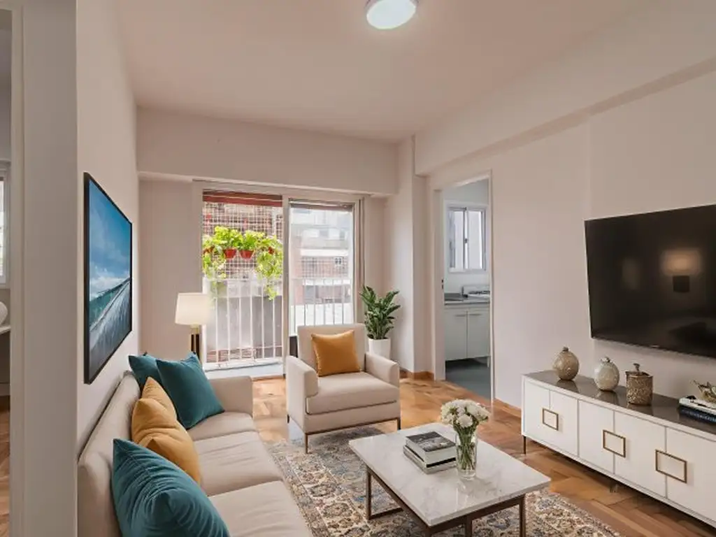 Ingreso por living comedor con Balcón Frances que permite ventilación natural y buena entrada de luz, espacio de guardado. Cocina separada con bajo mesada y conexión para lavarropas. Dormitorio con placard empotrado. Piso de Parqué pulido y plastificado. Baño completo.