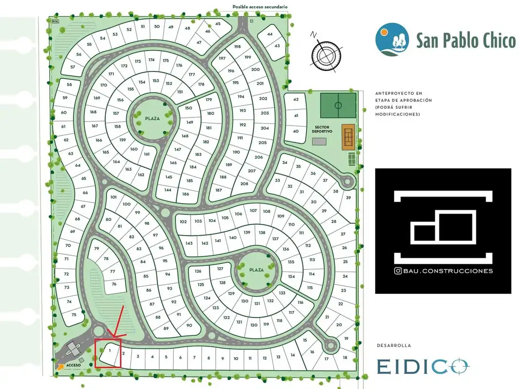 Descubrí tu próximo hogar o inversión ideal! Presentamos un excepcional lote de 606 m² estratégicamente ubicado en el prestigioso barrio San Pablo Chico, con una codiciada posición esquinera que maximiza su valor: