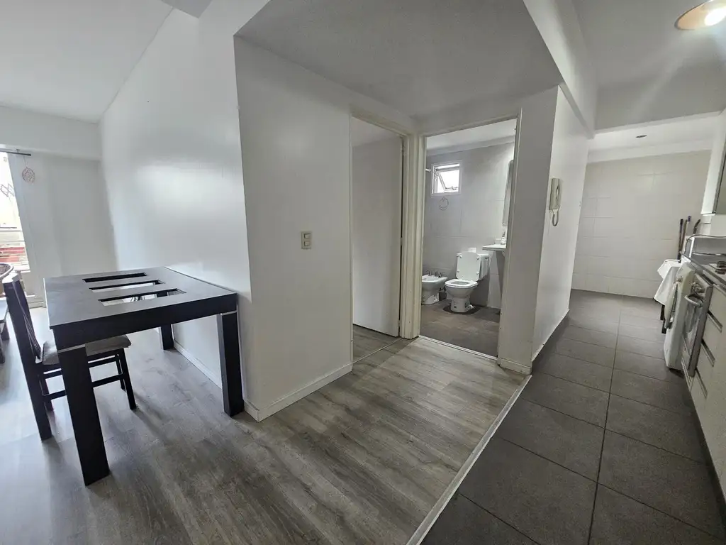 La unidad cuenta con living comedor con balcón cómodo, con espacio para mesa y sillas, cocina eléctrica, dormitorio con placard empotrado y baño completo con bañera, de generosas dimensiones y apto para personas con movilidad reducida.
