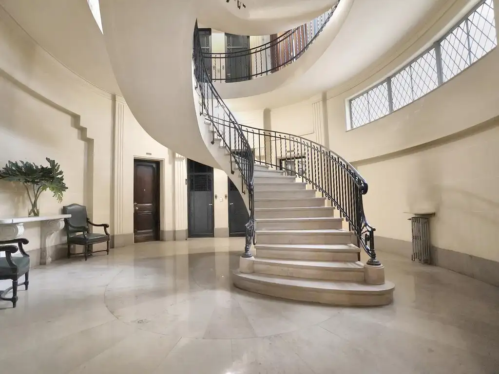 Tres dormitorios muy luminosos y amplios, con excelente espacio de guardado. Baño completo revestido en mármol de la india verde bosque. Toilette con solado y mesada italiana Ramiggiato. Cocina reciclada muy luminosa, con solado de Neolith crater, mesada y revestimiento neolith textil y muebles de cocina Rauvisio. Gran lavadero con solado y mesada neolith crater . Dependencia con su baño completo, también reciclado. Cuarto de chofer en el último piso. El departamento no tiene cochera pero se puede alquilar en el edificio. El garage es privado pero tienen prioridad de alquiler los residentes del edificio.